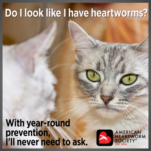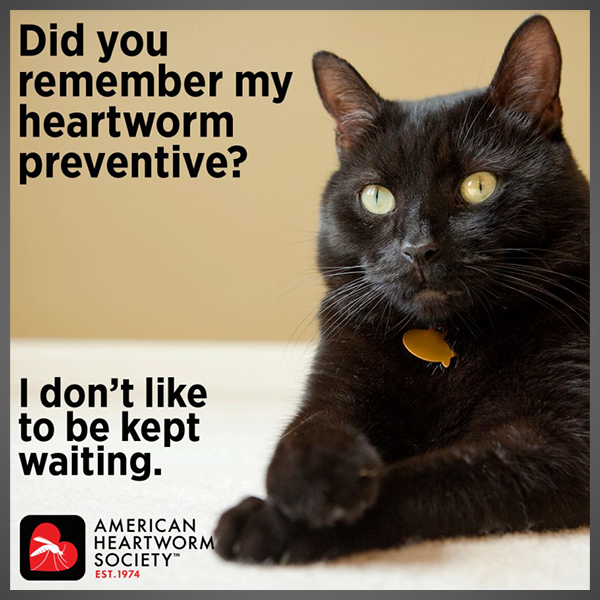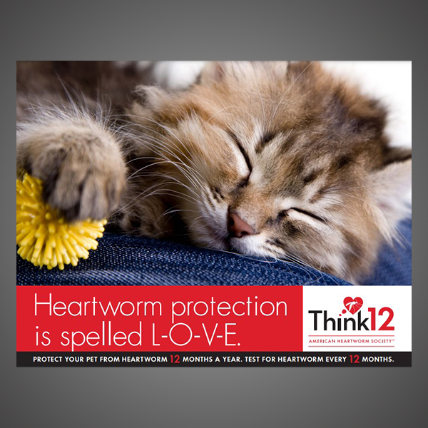 This poster reminds cat owners not to forget their cat's heartworm prevention.