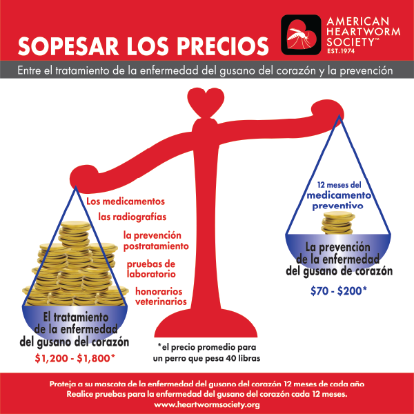 The cost of heartworm prevention in dogs is a small fraction of the cost of heartworm treatment.